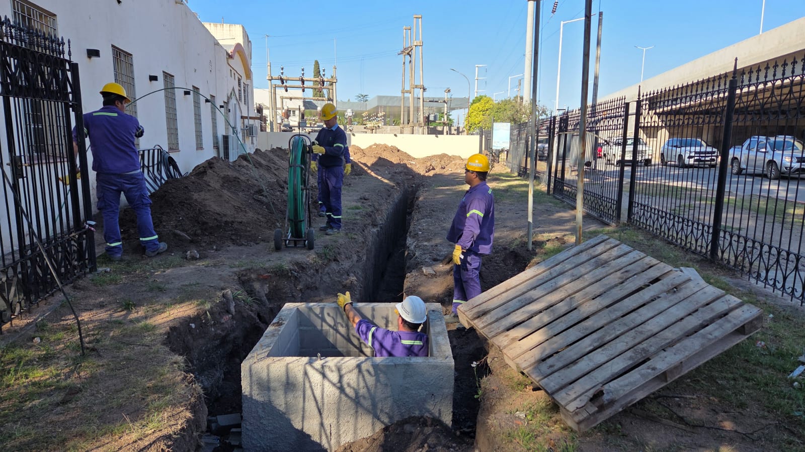 Jesús María: Personal de Redes Eléctricas sigue trabajando en el cableado subterráneo en el sector de Ruta 9 y Av San Martín.