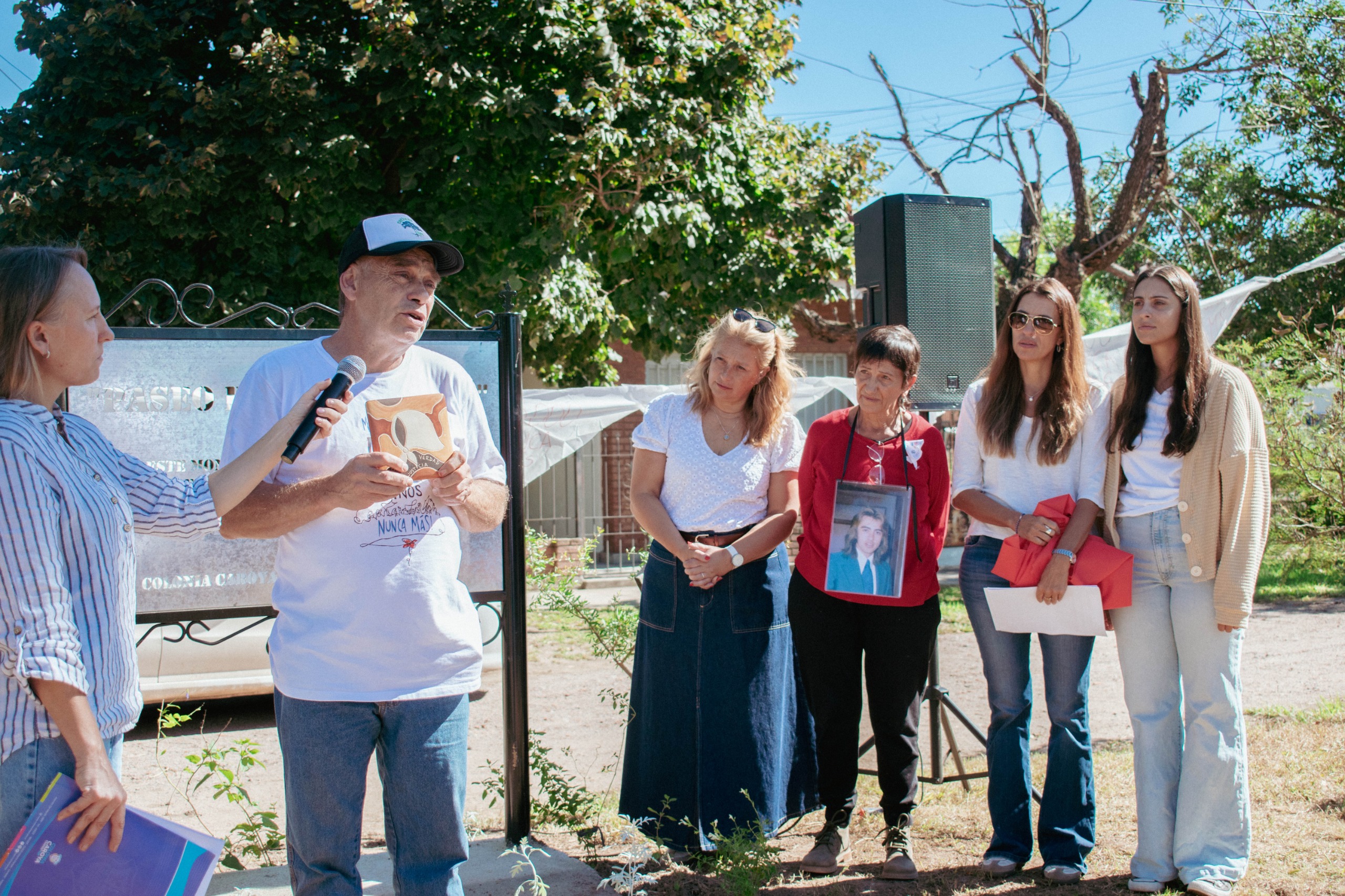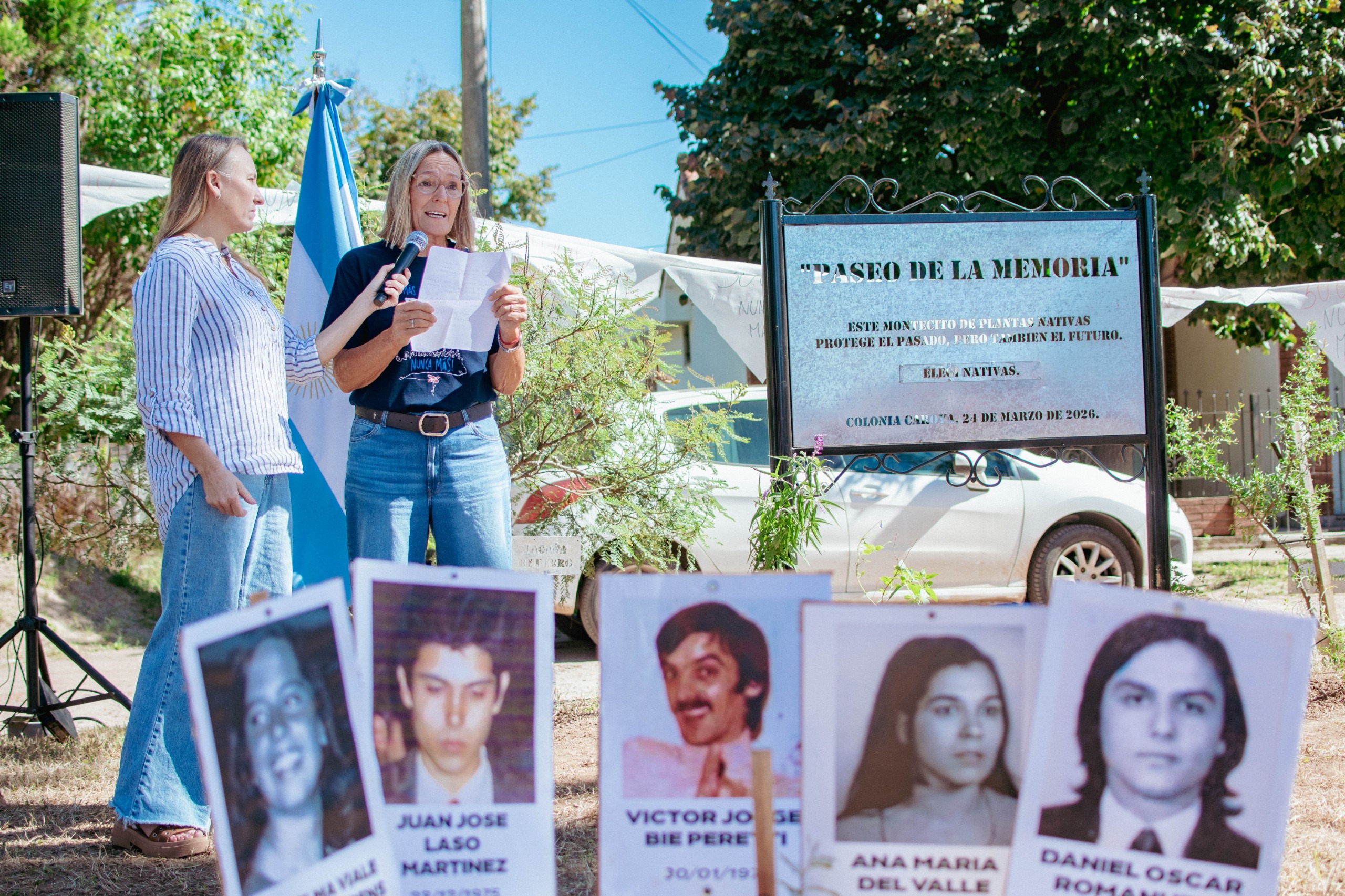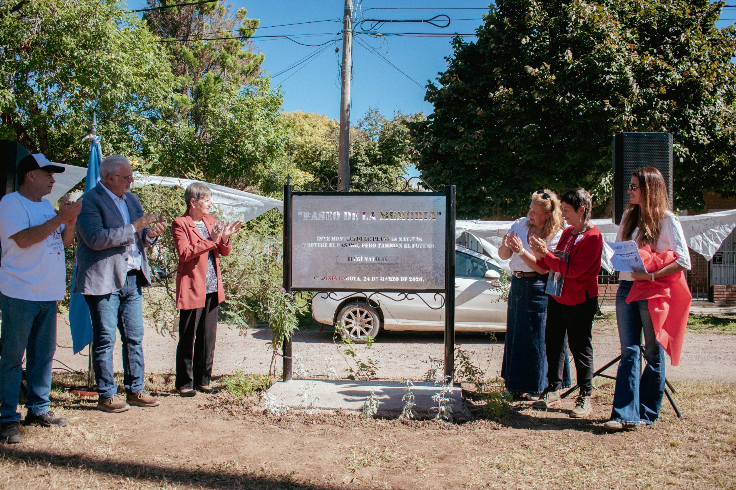 La Mesa de Trabajo de los Derechos Humanos de Colonia Caroya, Jesús María y Sinsacate; el grupo Nativas Colonia Caroya; y la Municipalidad inauguraron hoy, al cumplirse 50 años del último Golpe de Estado, el Paseo de la Memoria.