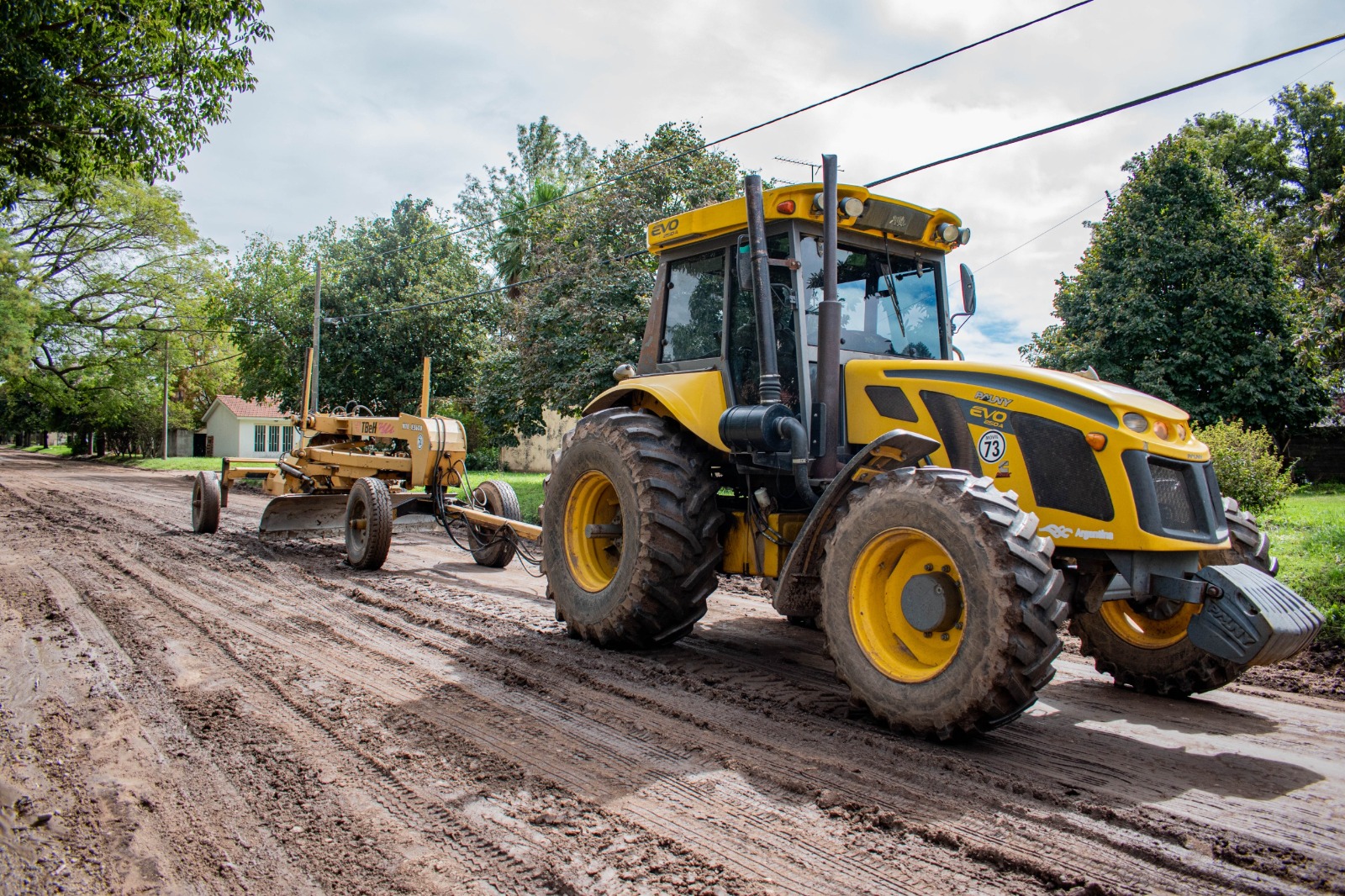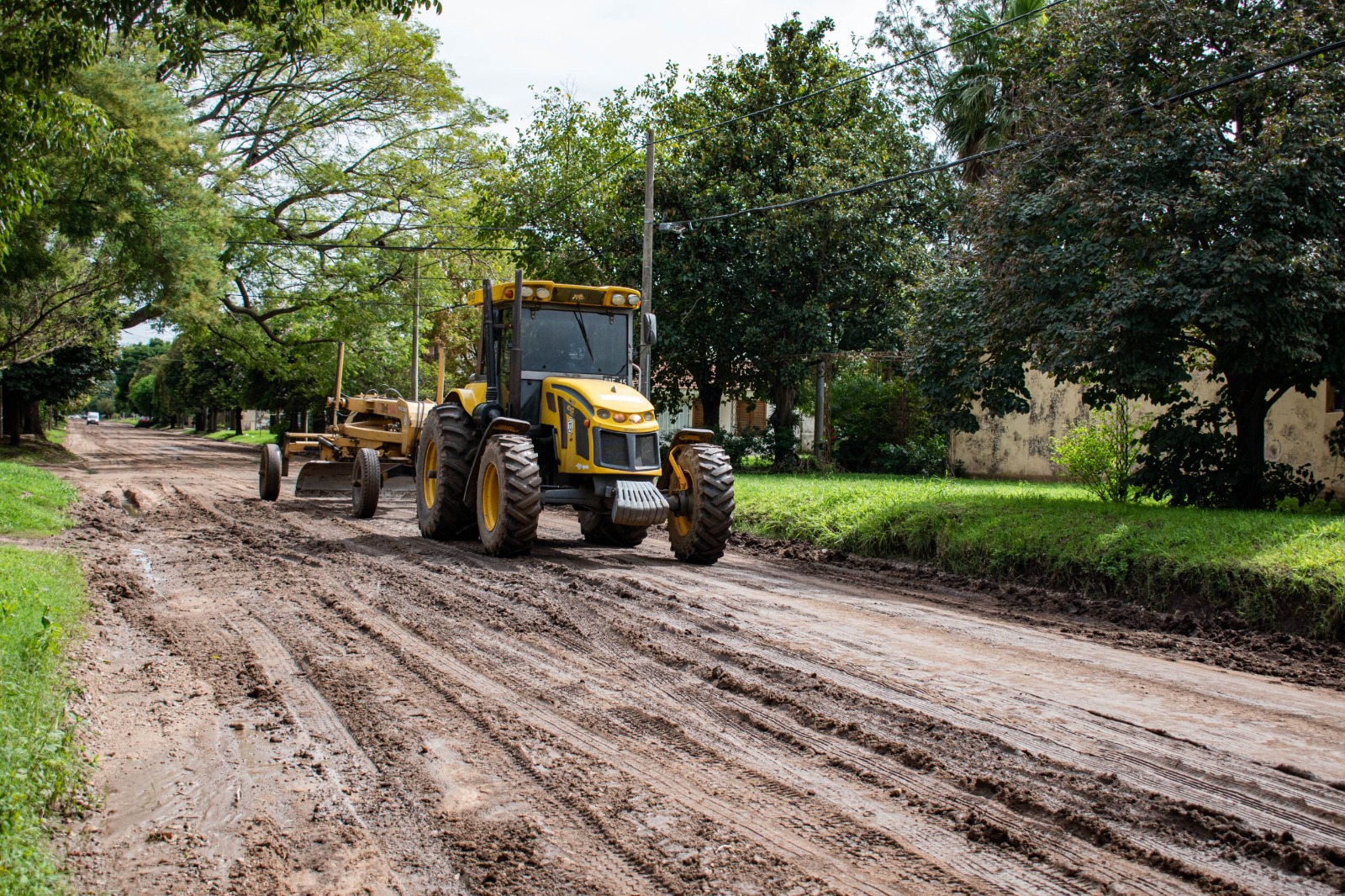 Luego de las lluvias del fin de semana, Servicios Públicos está con toda la maquinaria en las calles para el mantenimiento y recuperación de arterias urbanas y rurales.