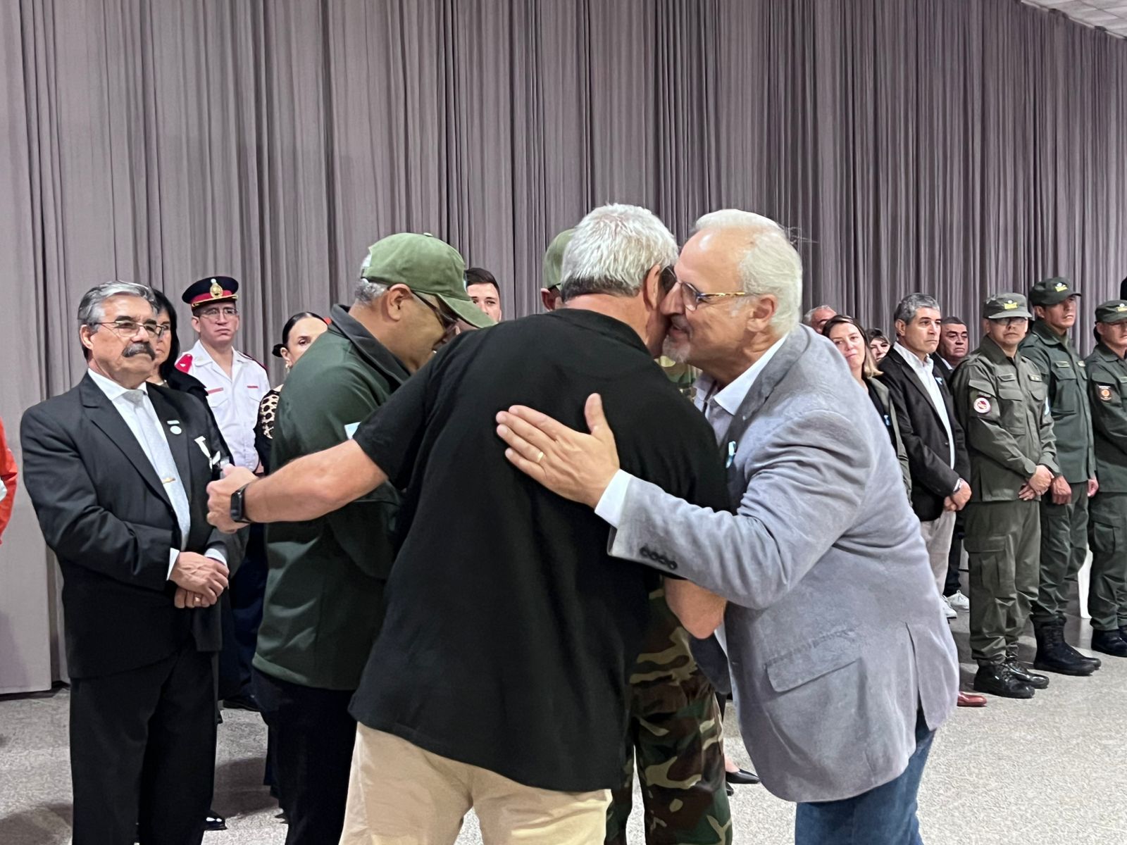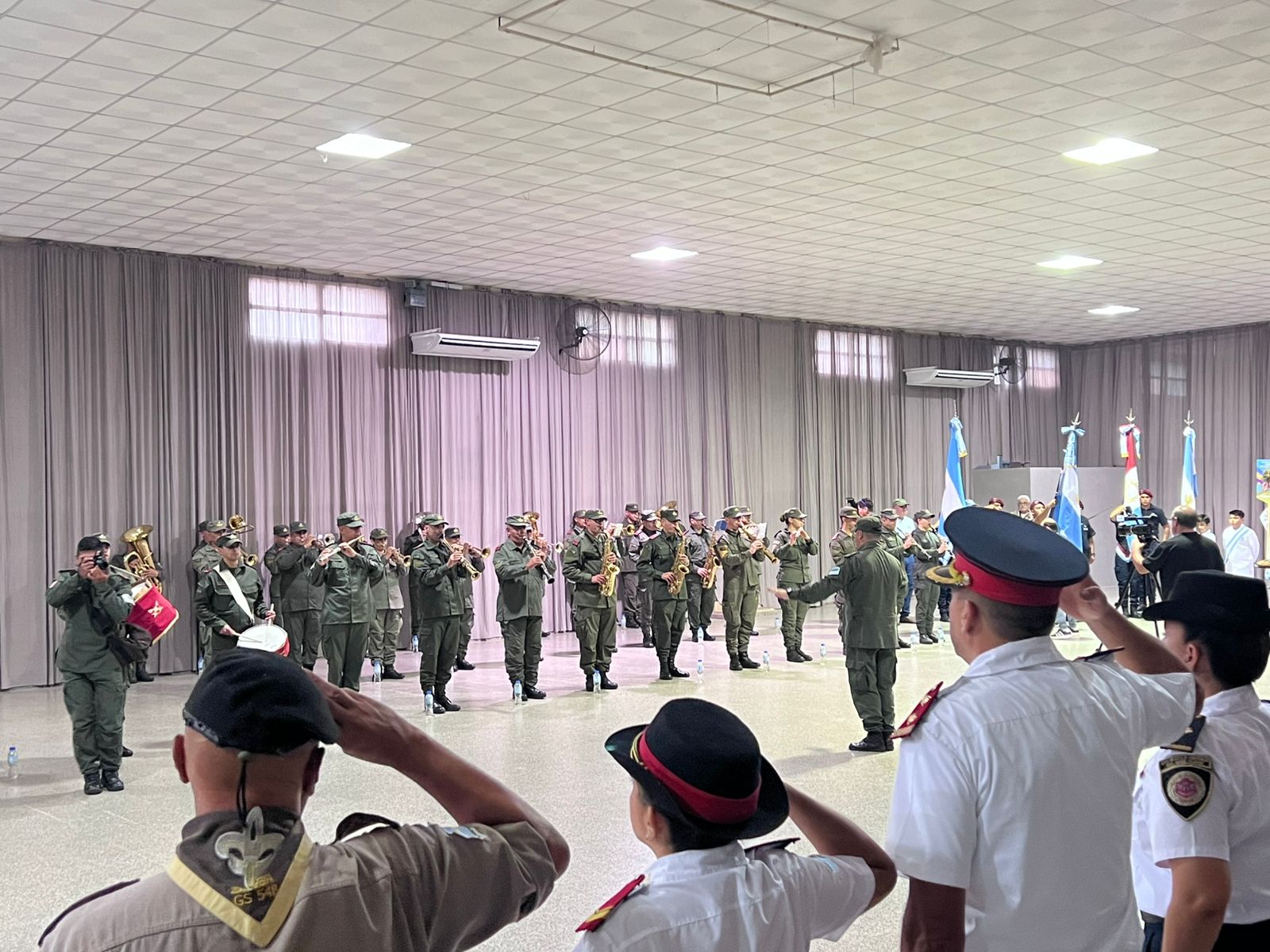 El acto contó con la presencia de representantes de fuerzas de seguridad, entre ellas Gendarmería Nacional, Policía de la Provincia y Bomberos Voluntarios, así como también de instituciones locales como la Cooperativa de Servicios Públicos y la Sociedad Rural de Jesús María.