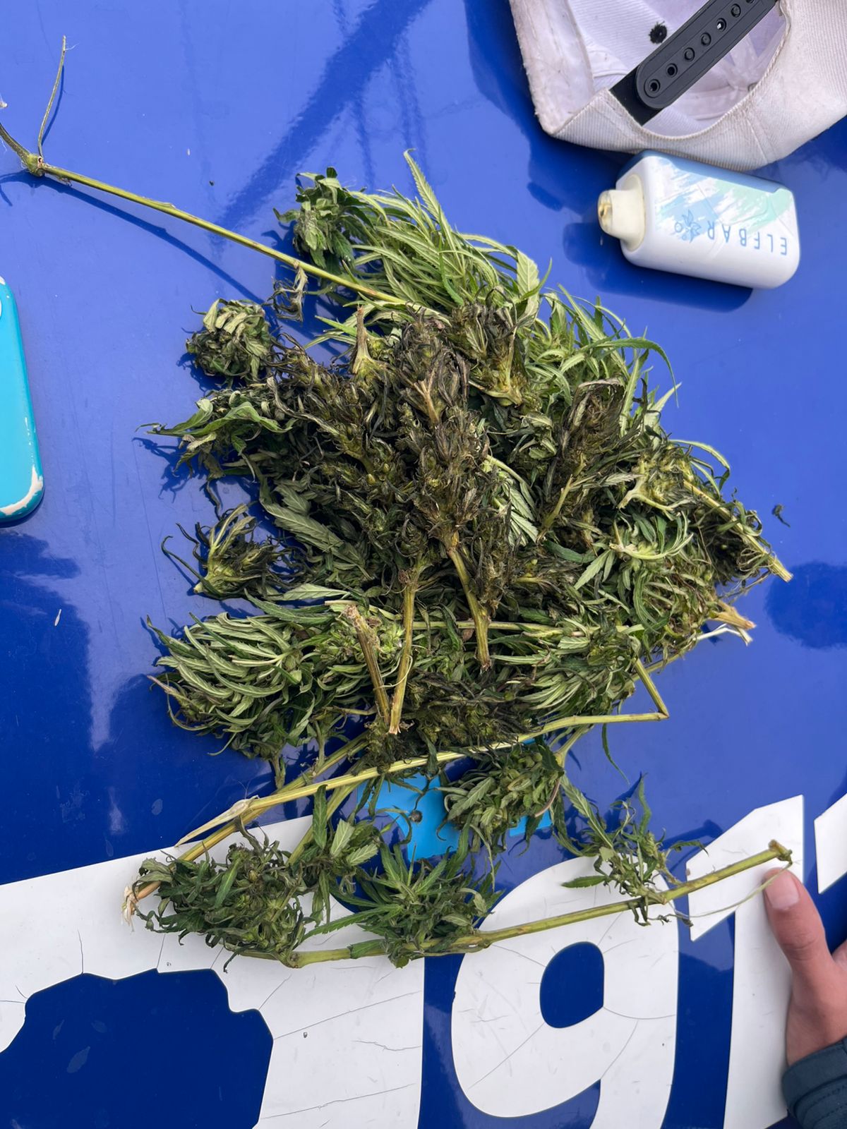 Personal policial procedió al control de un masculino de 30 años. Al realizarle palpado preventivo, se constata entre sus prendas una planta con características similares a cannabis sativa, procediendo a su secuestro junto a (01) teléfono celular marca Samsung A15 y (01) tijera.