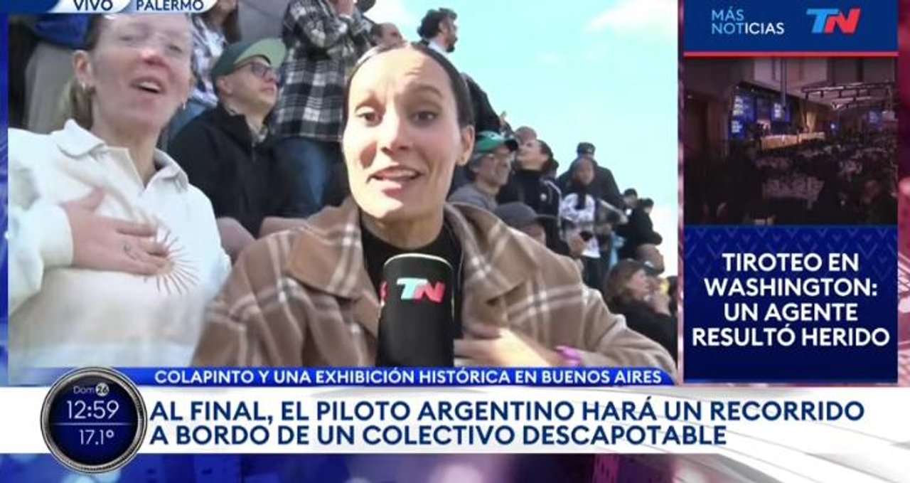 La notera de TN totalmente sacada al ver pasar a Colapinto: gritos, euforia y descontrol en el móvil
